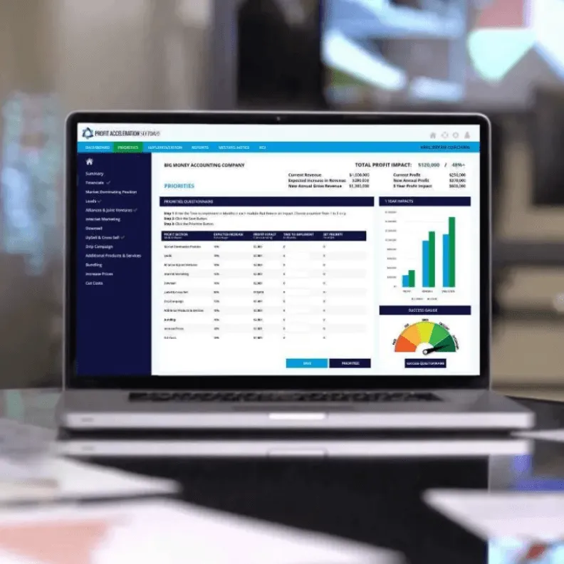 We will assess your business using our revolutionary new Profit Acceleration Software™. We will then detail the specific strategies that can generate massive financial breakthroughs for your business.